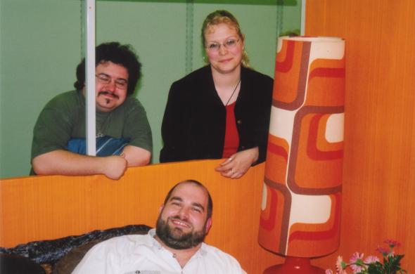 Die Lampe ... oh mein Gott, diese Lampe ... :) Und die Personen natürlich: Pipi, Webmistress Andrea und der herumlümmelnde Webmaster Chris