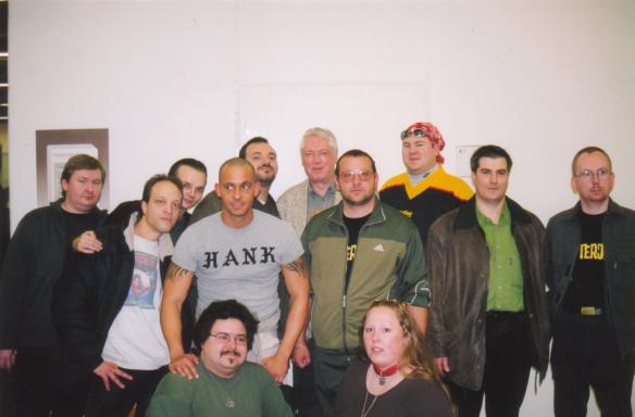 Alle zusammen: v.l.n.r.: Andreas (genannt "Der unbekannte Fan"), T(ony) B(allard) No. 1, Dean Corso, Hank, Gianni, Jason Dark, Joachim, Casi, Anonym, Mortal, und davor Pipi und Tanja
