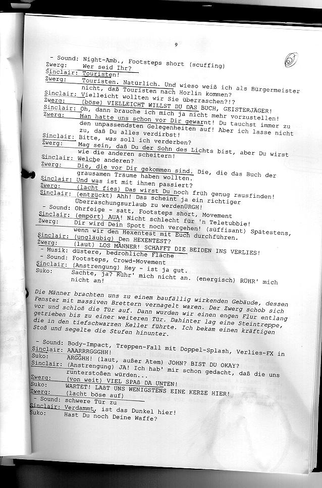 und Nebelaktion mit seiner Minikamera eine Skriptseite des Hörspiels