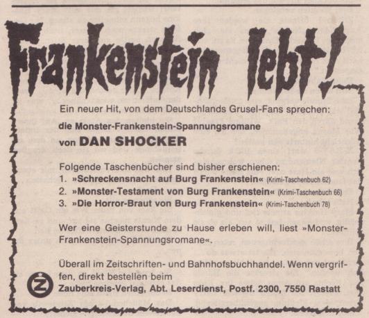 Werbeanzeige zu den Romanen